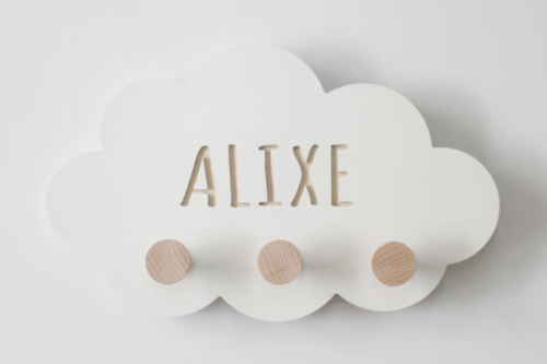 Maak jezelf of iemand blij met dit super leuk handgemaakt houten naamwolkje voor de baby/kinderkamer. De naam van het kindje wordt helemaal in het hout gegraveerd en de kapstokjes maken het naamwolkje helemaal af en handig om iets op te hangen.