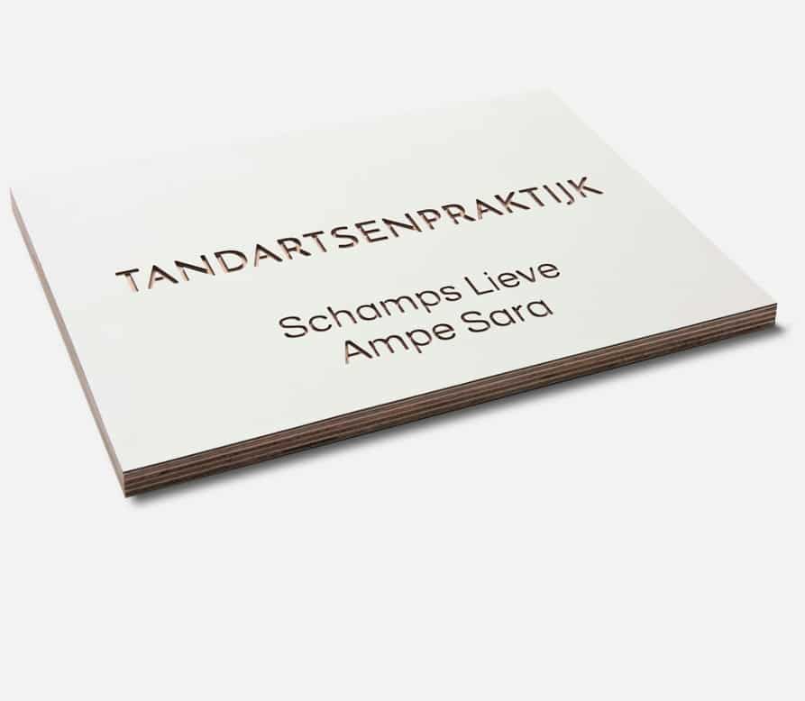 - Stijlvol gegraveerd naambord van hout met witte krasvaste toplaag