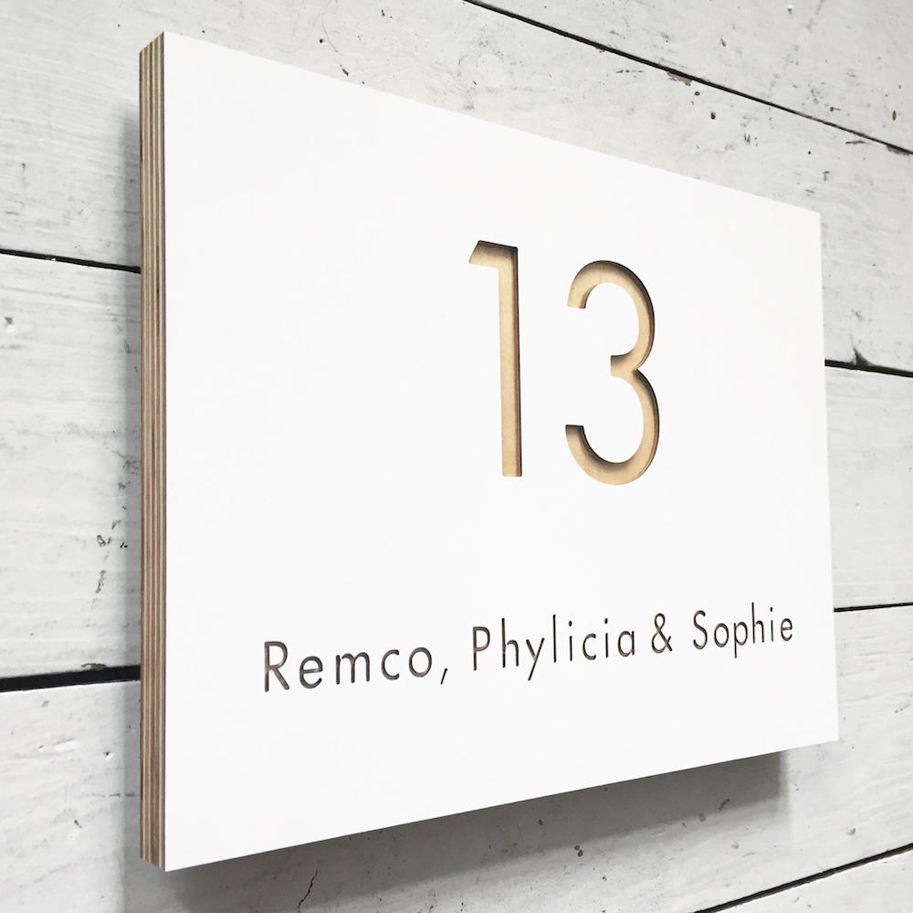 | Afmetingen | 13 x 13 cm (enkel huisnummer) €33, 13 x 13 cm (huisnummer + namen) €40, 19 x 14 cm (liggend) €59, 19 x 14 cm (staand) €59, 19 x 19 cm (vierkant) €66, 24 x 18 cm (liggend) €78, 24 x 18 cm (staand) €78, 24 x 24 cm (vierkant) €86, 29 x 21 cm (liggend) €90, 29 x 21 cm (staand) €90, 29 x 29 cm (vierkant) €99 |