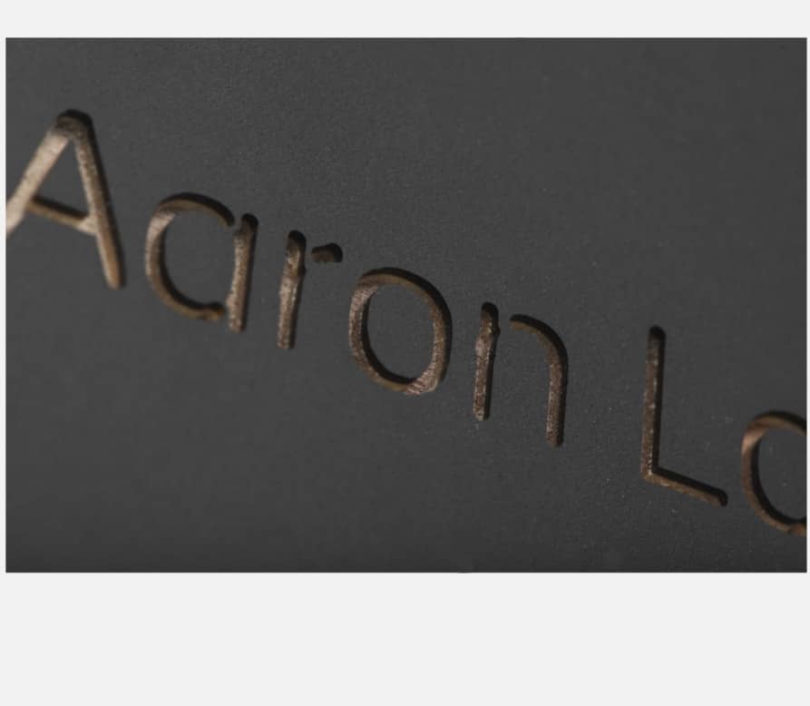 • Stijlvol gegraveerd naambord van premium okoumé hout